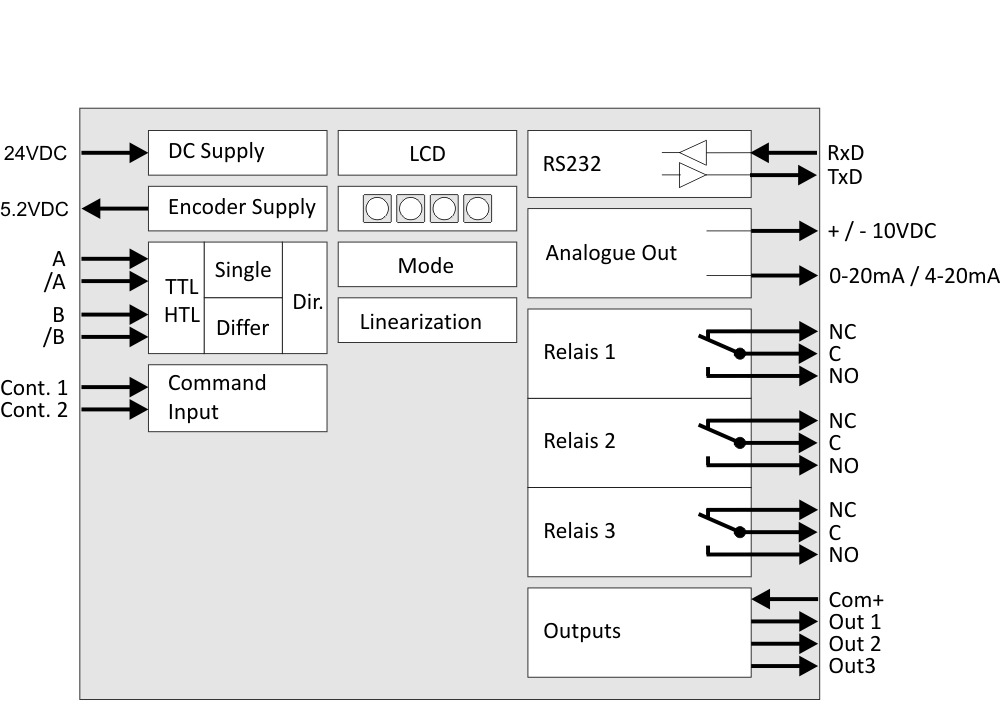 The DZ261 is equipped with 3 fast transistor outputs and a 14 bit analog output which can assume additional control and regulation tasks.