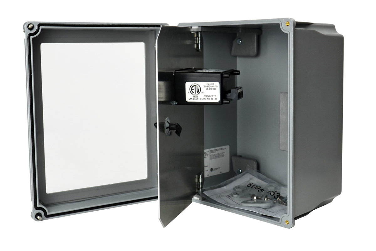 Enclosure Kit, NEMA 4X, 14x12x8, Fiber Glass, w/Swing Out Door & Window
