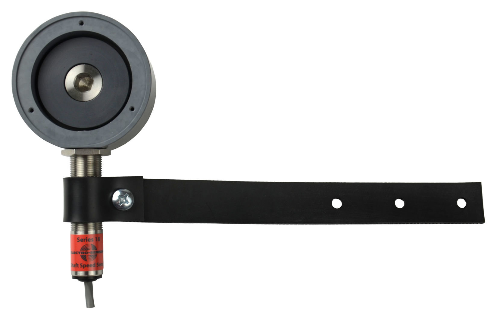 EZ-18mm with Series 18 Speed Sensor installed. Shown with the cover removed, exposing the 8 PPR Pulser Disc within the housing. Every Mounting Assembly comes with a Safety Strap.