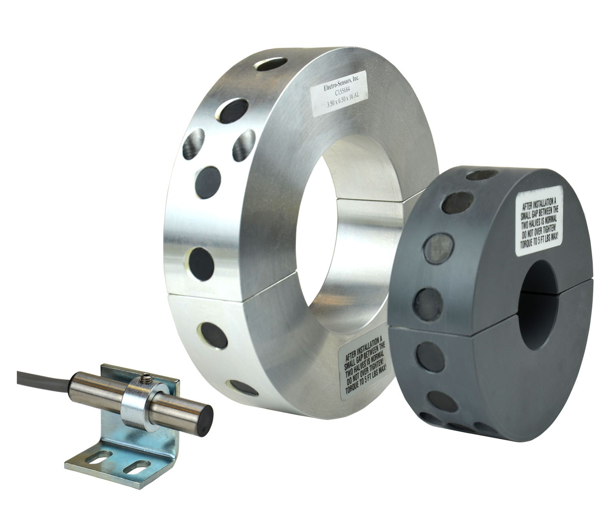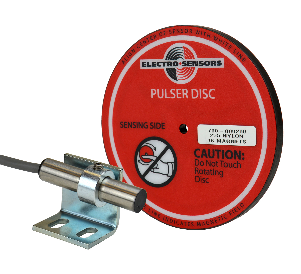 A pulser disc or split collar pulser wrap with embedded magnets is mounted on the monitored shaft. As the shaft rotates, the magnets pass in front of the sensor causing the sensor to switch high and low, thus producing a digital pulse output. The sensors provide a digital square wave signal with a 50/50 duty cycle when used with pulse generators that have evenly spaced magnets of alternating polarity, such as Electro-Sensors Model 255 Pulser Disc. The recommended gap distance between the sensor and pulse generator is 1/4 inch +/- 1/8 inch. The gap flexibility makes the sensors tolerant of vibration, shaft run-out, misalignment, and industrial environments.