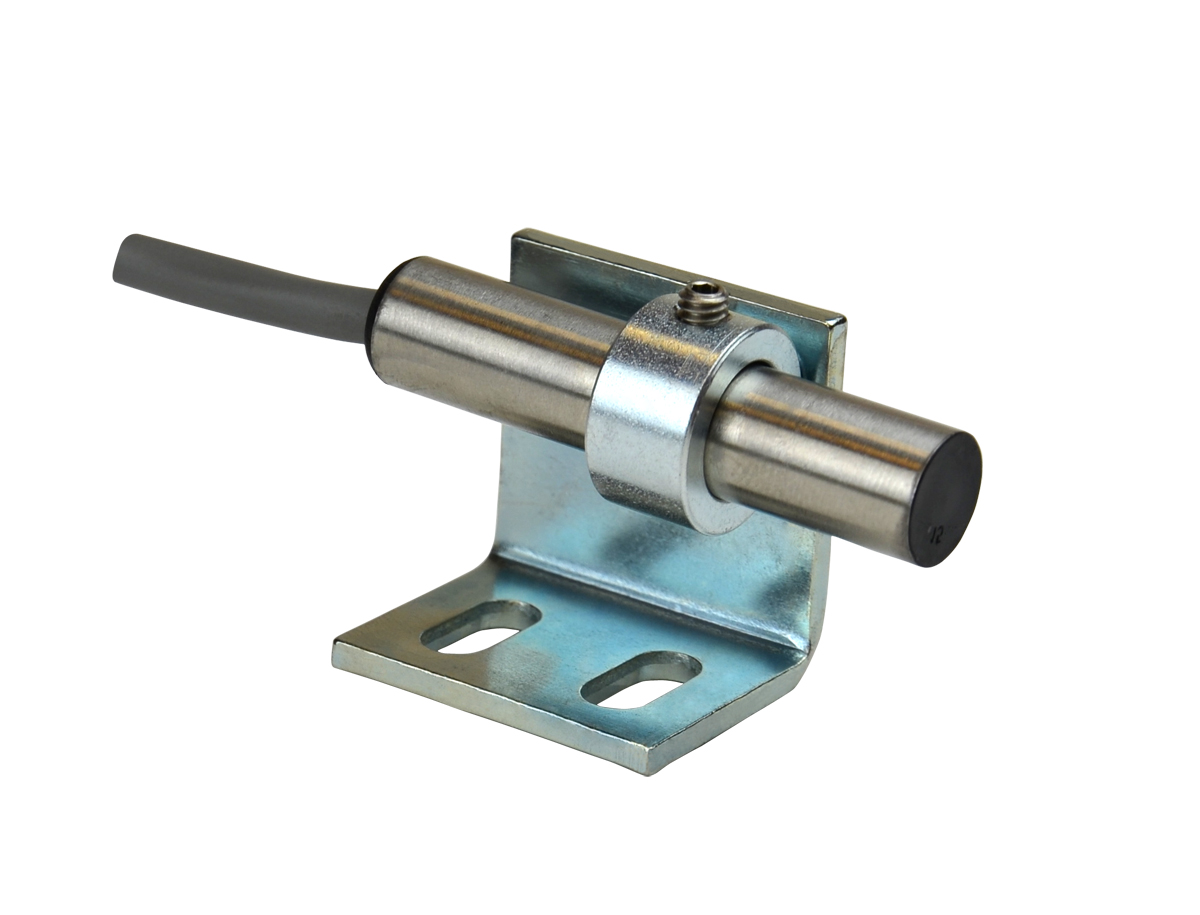 The 1101 Hall Effect sensor has a non-threaded stainless steel body, is supplied with a mounting bracket and 10 ft of 3-conductor shielded cable. It is commonly used with pulser discs or 60 pulse/rev magnet wheels.