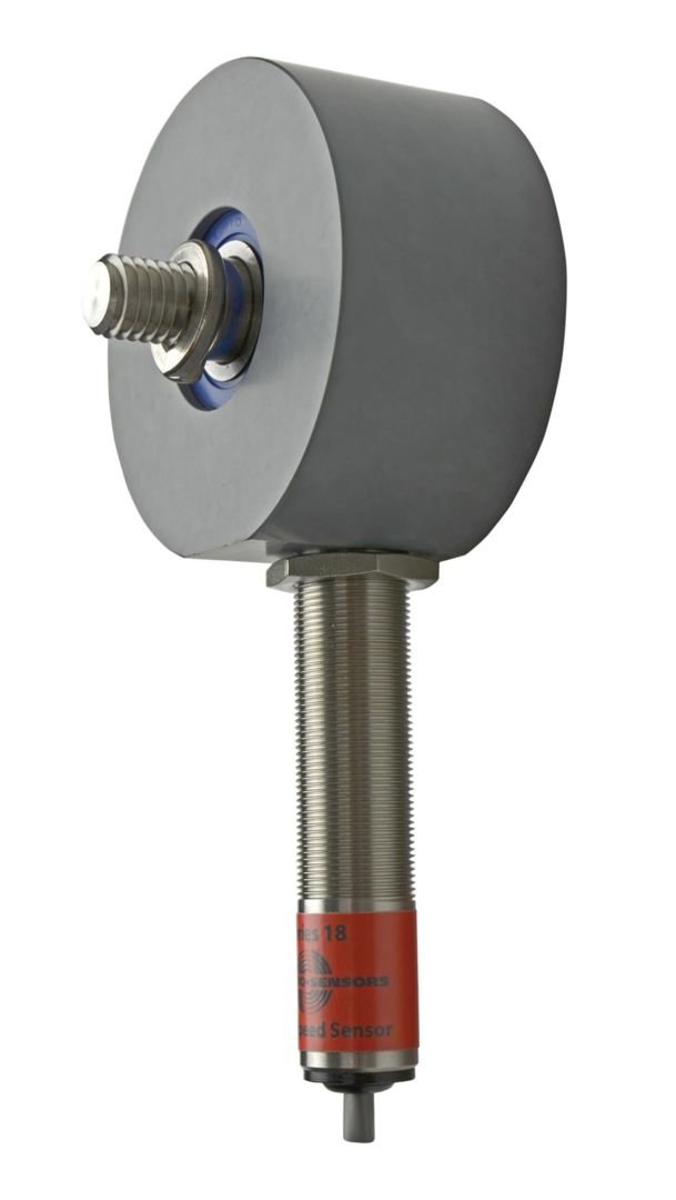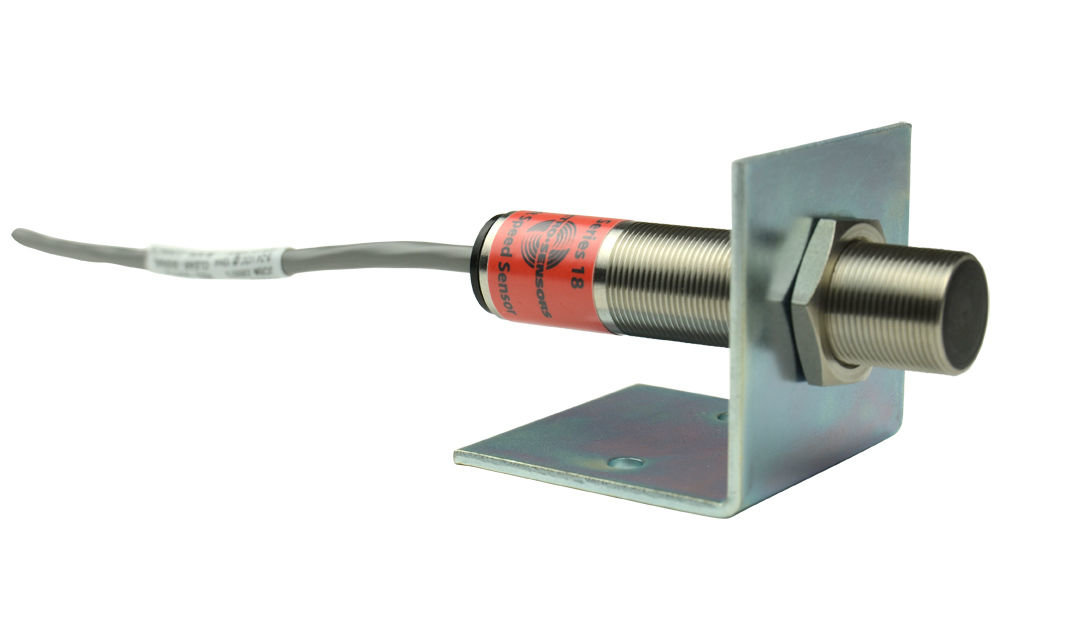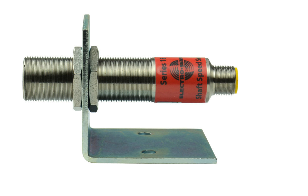 Series 18 sensors detect passing magnets of a shaft-mounted pulser disc or wrap and output a voltage pulse frequency directly proportional to the shaft rotation speed. All models work with all Electro-Sensors pulser targets (discs and wraps) and operate down to zero speed. All models have rugged stainless steel M18x1 housings, epoxy-filled and sealed against liquids/dust and come with two stainless steel hex jam nuts and a bracket.