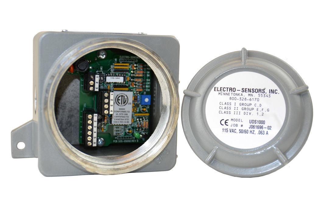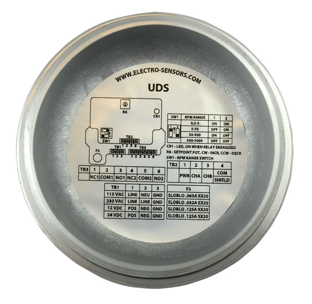 During operation, the UDS1000 energizes its 5 Amp, DPDT relay when the monitored shaft is at rest or turning in the desired direction of rotation. The relay contacts can be used to enable the motor starter circuit, or provide a visual indication that the start up or process commencement is possible. When the monitored shaft turns in reverse (wrong direction) the relay de-energizes, thus preventing the motor or process from starting.