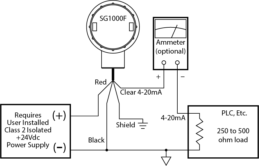 The optional PM500 Process Meter can be used as a remote display and can provide the +24 VDC output power for the SG1000F. It can display the 4-20 mA signal in any user units, including as a percentage between fully-closed (0%) to fully-open (100%) allowing the shaft to be accurately positioned when regulating the flow of a product or mixing products. The PM500 has options of two or four relays which are fully programmable and there is also a 2-channel, 16-bit 4-20 mA programmable output option for mirroring the 4-20 mA signal to a PLC.