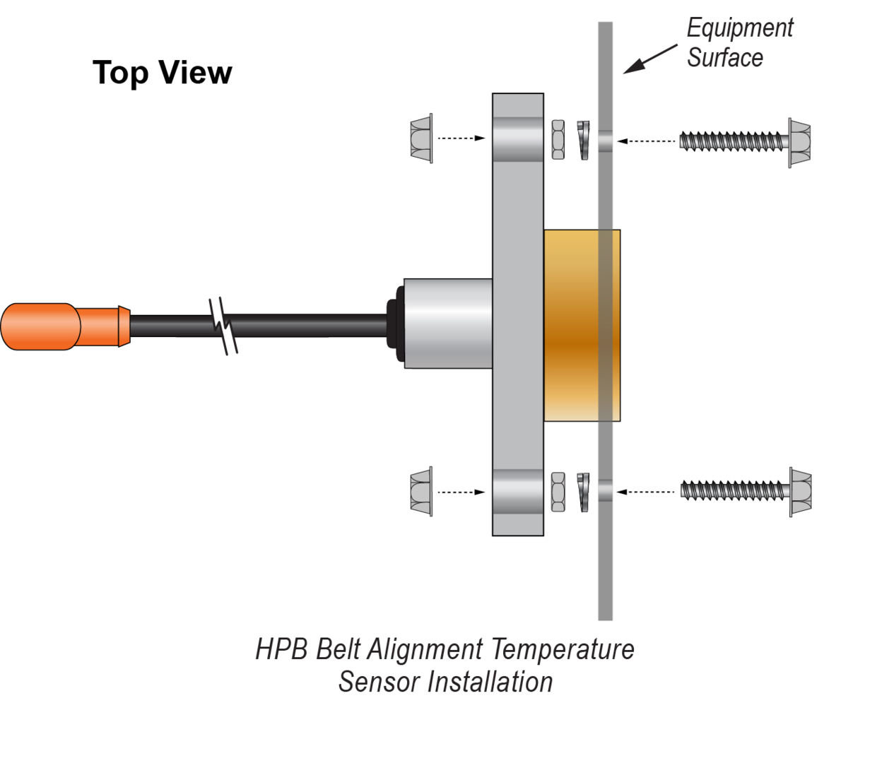 The belt alignment temperature sensor is mounted on the machine in a location such that if the belt moves to the inside of the casing, the brass sensor body will be contacted and the resulting temperature rise will be detected.