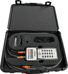 The InsightHP tester is a sensor signal measurement and emulation tool for field testing HazardPRO systems. When connected between a HazardPRO sensor and node input, user-directed tests measure, display and copy the sensor signal, modifying and outputting it to the node for system warni ng and shutdown tests. TEMP and SPEED tests emulate bearing/rub-block heat-up and conveyor slow-down by ramping the output signal from the sensor input level to the set final level at the set rate. Signal ramps may be paused (signal holds constant), resumed and reversed. Paused output signals may also be manually stepped. CONTACT emulates a plugged chute by inverting the contact output relative to the input. TIMER emulates a stopped conveyor by outputting an abrupt zero speed signal, measuring time to alarm.